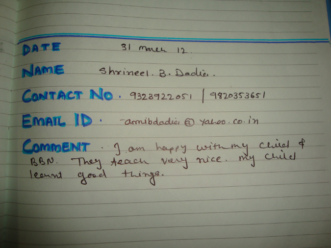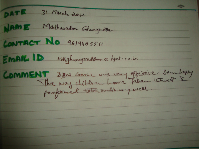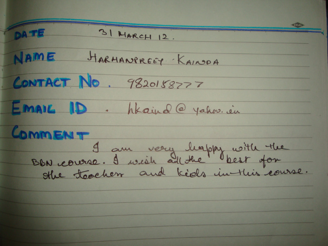 BBN Week 1 RIS Chembur (26th March to 31st March 2012)